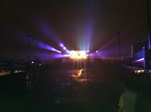 El concierto tuvo que ser cancelado a mitad porque estaban por colapsar los ligamentos del techo en el New Center cuando la gente comenzó a brincar al ritmo de la música electrónica.