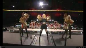 Dejando a un lado a LMFAO, Madonna volvió ella sola con el tema Give me all your love al ritmo de porristas en el cual sorpresivamente la rapera Nicki Minaj se le unió.
