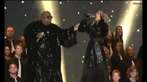 Despues de las porras entre Minaj y Madonna, Al ritmo de una batucada Madonna interpreto Open Your Heart y más adelante todo el escenario cambio por completo vistiéndose ella de negro y un coro de hombres y mujeres se apareció tras ella para interpretar el tema de cierre: Like a Prayer con el rapero y productor Cee Lo Green.