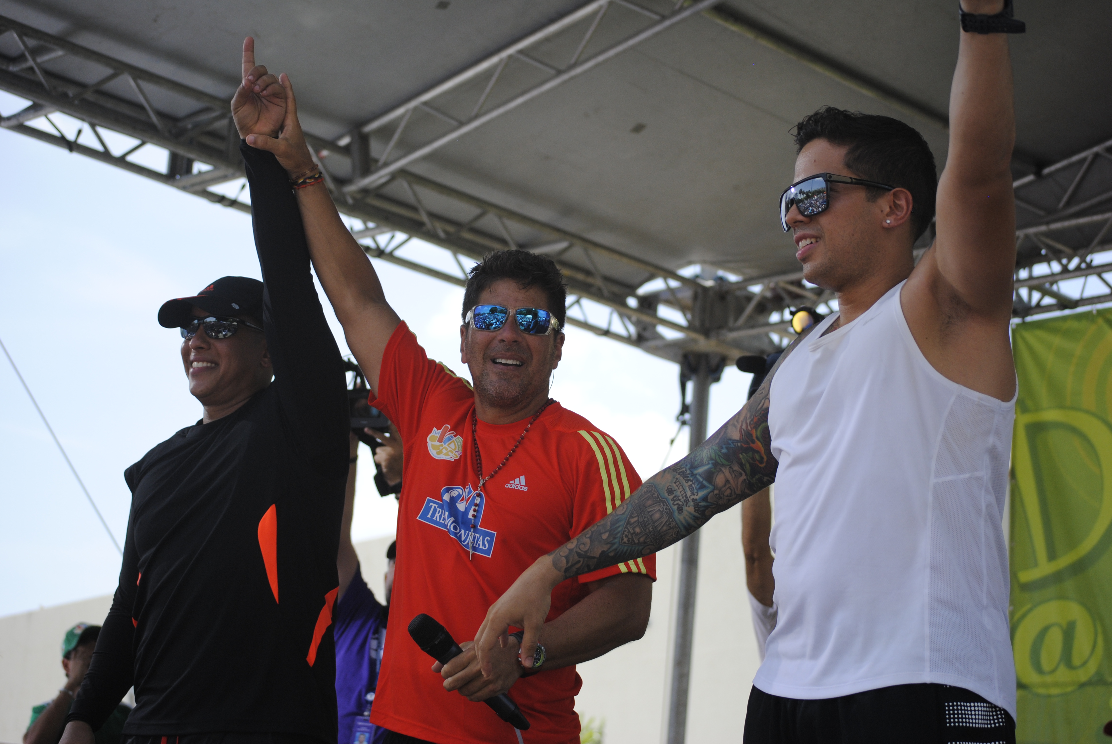 Daddy Yankee y De la Ghetto quienes caminaron con el comediante desde la Cuidad de Bayamón el dia de ayer, llegaron junto a Arrieta a la Tarima instalada en el estacionamiento de Telemundo Puerto Rico en la cuidad de Hato Rey.