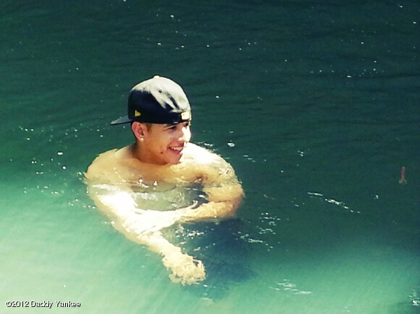 «Relax en el río del Yunque-PR!» -Tweeteo el artista acompañado de la siguiente foto: