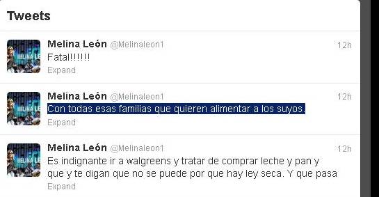 “Es indignante ir a walgreens y tratar de comprar leche y pan y que y te digan que no se puede por que hay ley seca. Y que pasa- Con todas esas familias que quieren alimentar a los suyos.”