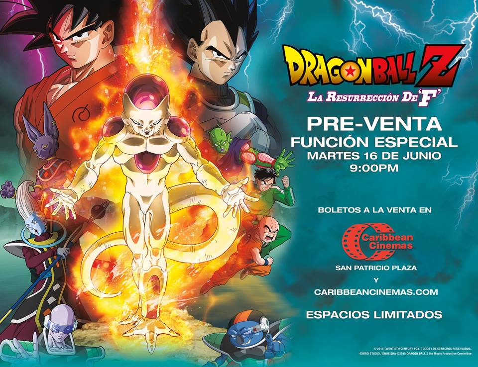 Desde mañana al medio día podrás comprar desde las 12:00PM podrás conseguir tus boletos para la función especial de DRAGON BALL Z: LA RESURRECCIÓN DE F en Caribbean Cinemas de San Patricio y a través de caribbeancinemas.com